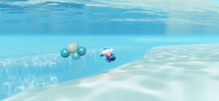 宫殿内部采用分层式结构,主要分为上层观景平台和下层互动区域。上层平台可俯瞰整个海底景观,包含发光水母群和悬浮的遗迹残骸。下层区域需通过中央漩涡通道进入,该通道会周期性开启,玩家需把握时机快速下潜。潜水过程中需注意氧气消耗,及时接触蓝色气泡补充氧气条。