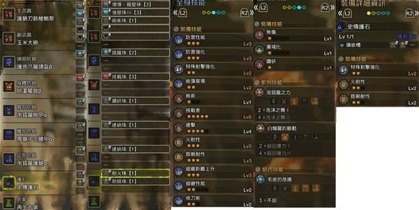 若需要昏厥耐性而不是收刀术,可以换成煌雷龙Y护腿,也可以把「连击」换成回避距离上升。如果是铳枪不需要力量解放,可以换成纯洁龙铠B,触发挑战者。