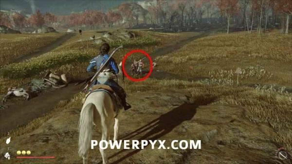 第三步:前往乌拉拉森林的焦庄。在烧毁的建筑内与三件物品互动(只有完成前两个步骤后才能互动):分别是冒烟的石头、角落的榻榻米和面具堆。互动后会触发过场动画,悬赏目标出现,击败悬赏目标。