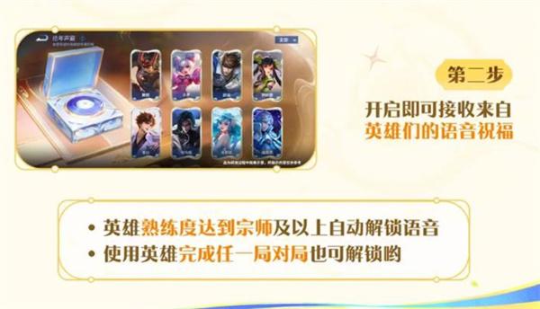 3、使用道具开启后,即可随机接收来自不同英雄的十周年语音祝福。