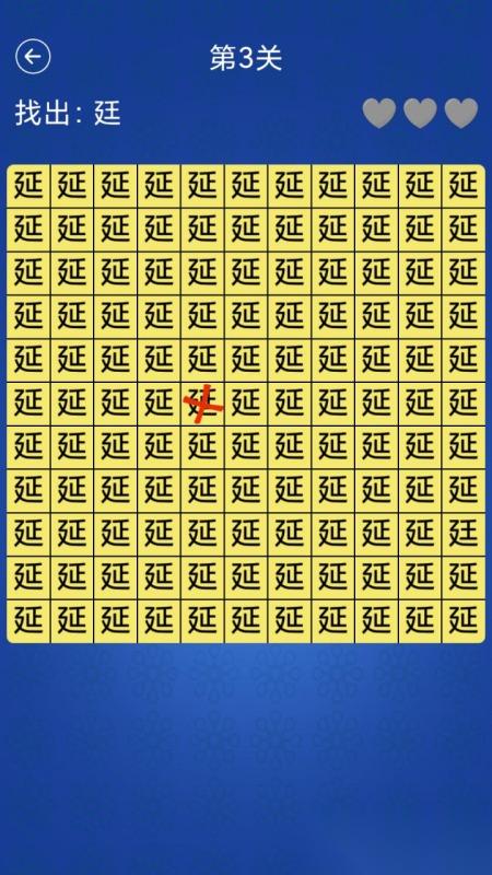 一个以汉字辨识为核心的休闲益智手游,游戏玩法非常简单,玩家需要在密集排列的汉字矩阵中快速找出唯一一个不同的汉字,比如日和曰、己和已等,每个关卡有时间限制和三次试错的机会,游戏前期关卡以常见相似字为主,后期会开始出现生僻字、甚至是篆书隶书,每个关卡完成后会有汉字的注音和释义,比较适合孩子进行游戏。
