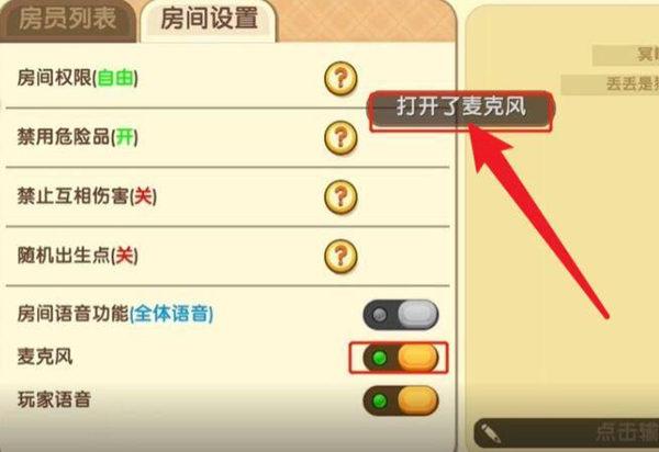 迷你世界开麦的方法是:选择一个房间进入,默认是没有打开语音功能的,得手动打开,点击小地图旁边的房间图标,就可以看到房间语音功能了,将房间语音功能打开,可以看到麦克风和玩家语音选项,将麦克风打开,就可以进行语音对话了。