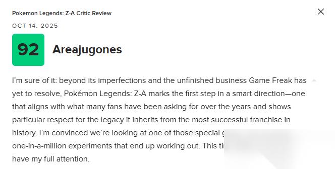 我可以肯定地说:尽管《宝可梦传说Z-A》并非完美无瑕,仍有一些Game Freak尚未解决的问题,但这部作品无疑迈出了正确的一步——它回应了多年来无数粉丝的期待,也展现出对这款史上最成功系列所承载遗产的由衷敬意。
