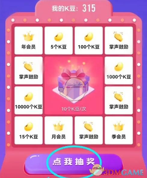 想要参与抽奖,我们可以打开KK键盘APP,进入“我的”页面后点击“K豆余额”选项,在余额界面找到并点击“抽奖”按钮,进入抽奖页面后选择“点我抽奖”即可参与,奖品可能包含会员、K豆等福利,每日参与还能提升中奖概率哦!
