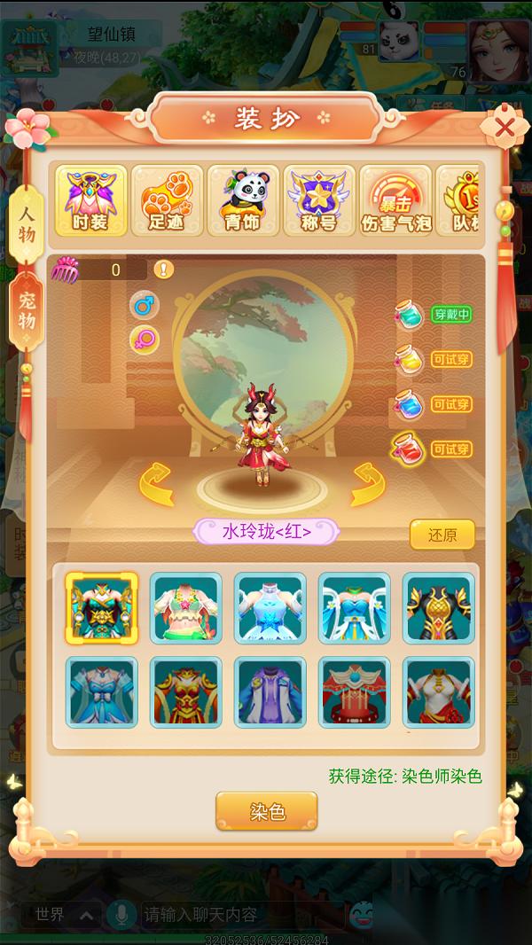 以水玲珑为例,她原本一身水绿裙裳,清雅脱俗;若选用蓝色系染色,则会化身为白发蓝衣的“雪境仙子”,气质清冷高贵;若选择红色方案,则瞬间变为红裙夺目的明媚少女,尽显热情与灵动。