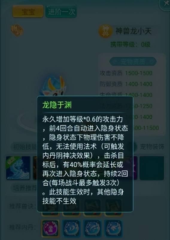 4、龙小天:除了天生高出等级*0.6的攻击力,还在前四回合自动就进入隐身状态,并且物理伤害不降低。