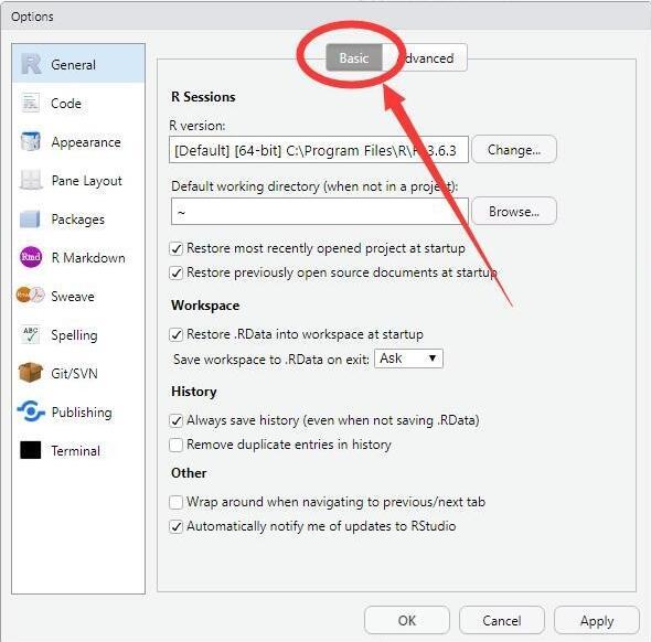 4、再点击右侧上方中的"Basic"选项卡。