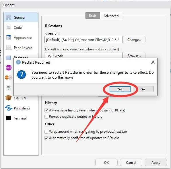 9、在弹出的提示窗口中点击"yes",重启软件即可。