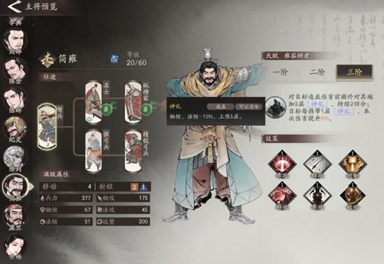 简雍在三国望神州中定位为法术辅助型角色,核心优势在于高智力属性和强大的群体控制能力。他的技能体系以减速、持续伤害和团队增益为主,能够在战斗初期就为队伍创造有利局面。由于其法术输出潜力不容忽视,因此在资源分配上应优先保障技能等级的提升,尤其是主控技能的升级,能显著延长敌方单位的减速时间并扩大作用范围,适用于多种战斗场景。