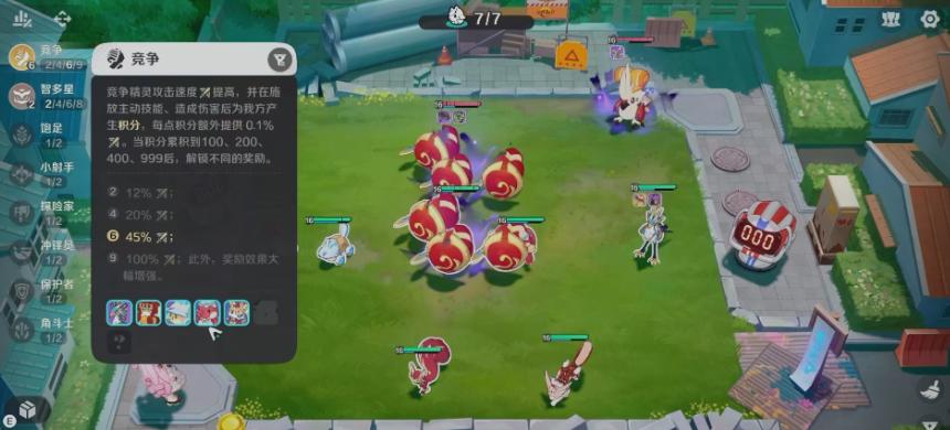 而这里的加成就体现在攻击速度上面的提升,所以在积分累积到100,还有200或者是400,以及999点之后,这里还可以接受不同档次的奖励,也就是说在击败效果上面,它根据目前获取的积分,会有不同阶段的加成效果,所以大家如果想要利用它这个近战原理的羁绊达到最好的阵容效果,还是可以多用一些此类原理的精灵一起出战,这样得到的攻速加成才会更高一些,一般来说,达到9级半的时候,攻速加成是最高的,可以达到百分百的加成能力。