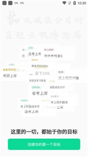3、之后便可以创建你的第一个目标,是减肥、考试过关、恋爱、还是工作顺利等,都可以自由定义;