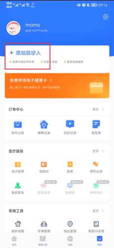 2、点击添加健康卡