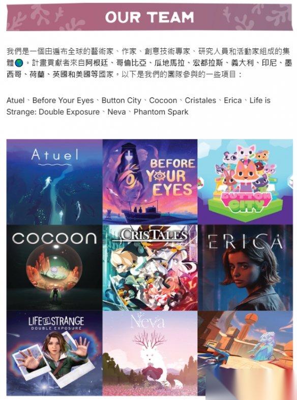 说是独立工作室,团队阵容可不小。在游戏宣传活动官网的下方,他们自称是来自全球的艺术家、作家、创意技术专家、研究人员和活动家组成的集体,还放出了曾经参与制作的一些著名游戏IP项目。