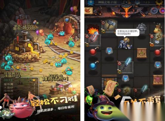 在迷宫的游戏当中,这款融入了策略元素,有300多只冈布奥角色,通过多种收集方式,感受每个角色他们所具备的独特来头以及背景,性格和技能都是不一样的。在这款充满着不可思议元素的迷宫手游当中,有肉鸽的玩法,以及28种不同的主题迷宫,让你在每次闯关的时候都不会有重复的情况。支持挂机的方式来获取资源,冒险的时候不枯燥。