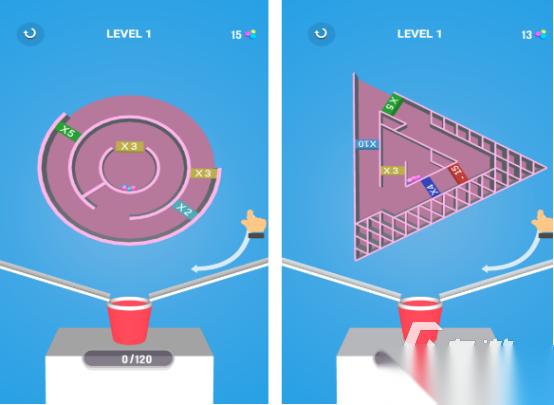 游戏当中的玩家将会置身于以迷宫探险为主的环境,只不过它并不是以主角闯迷宫为主,而是化身为球球。在进入了里面的环境以后,无论是三角形或者是圆形,都有着不同的难度挑战。当游戏的迷宫里面拥有着很多障碍的情况下,就会让球球在闯迷宫的过程当中,面临更加复杂的任务,只有顺利凭借玩家的操作进入桶中才能完成任务。