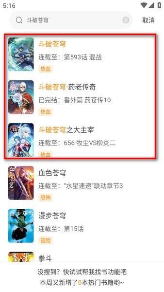 包子漫画app怎么搜索漫画,打开包子漫画app后,点击头部的搜索框,输入书名、作者关键词,就可以搜索,比如搜索斗破苍穹,如图所示,会展示多个结果,一般能搜到系列相关的漫画。