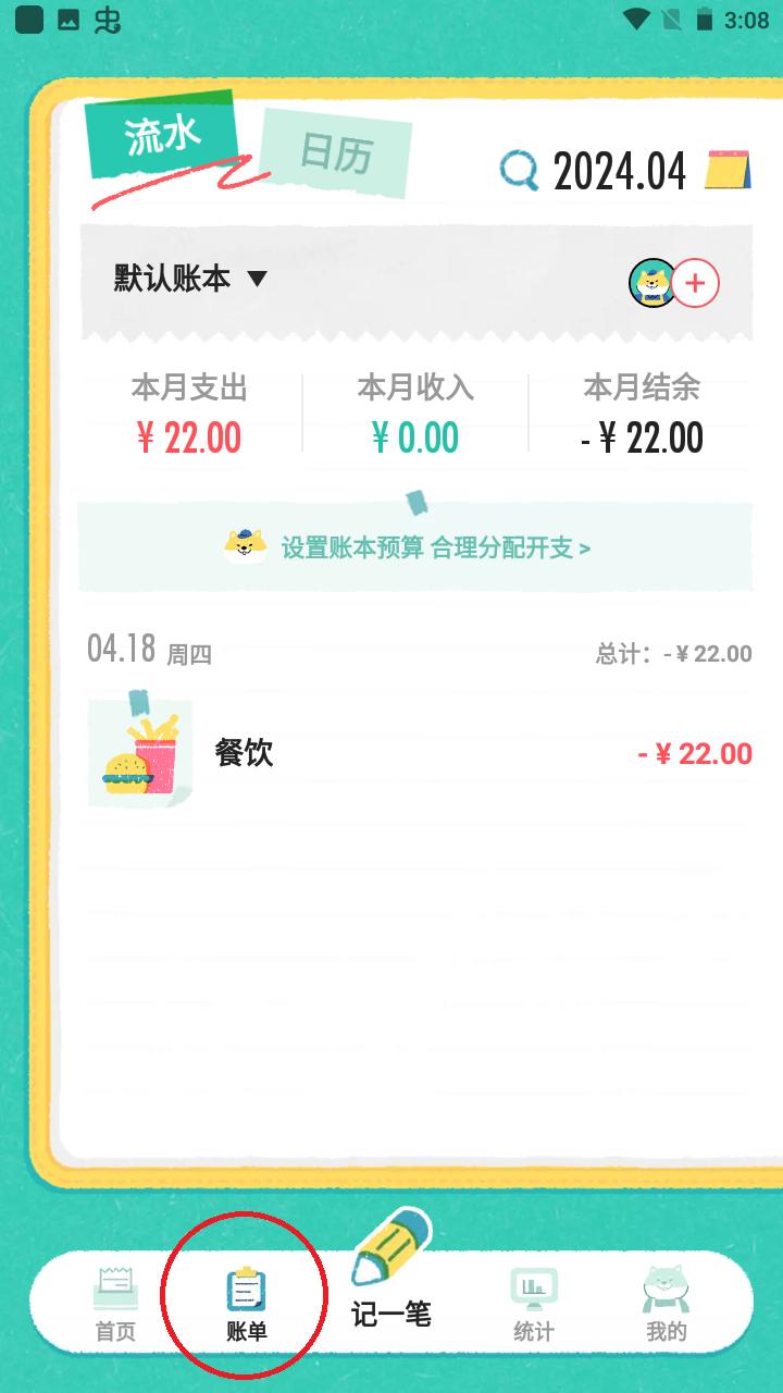 1、打开阿柴记账app首页,点击底部【账单】选项。
