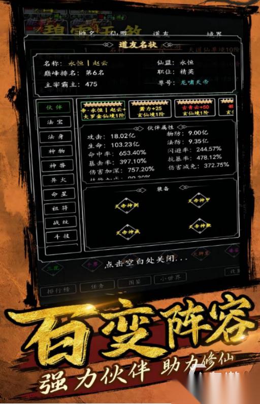 在人们的印象当中,本以为休闲游戏需要投入足够的时间,而且长时间在线才能够成功飞升。但是了解了这款游戏之后,会发现是无比轻松的休闲手游,主打放置挂机,通过放置打坐的方式,就能够成功飞升。具有简洁的mud风格设计,以文字描述构造出非常别致的修仙世界,还原传统文字游戏所带来的沉浸感,另外也有自由探索玩法,可以在不同的角落当中获得天材地宝。