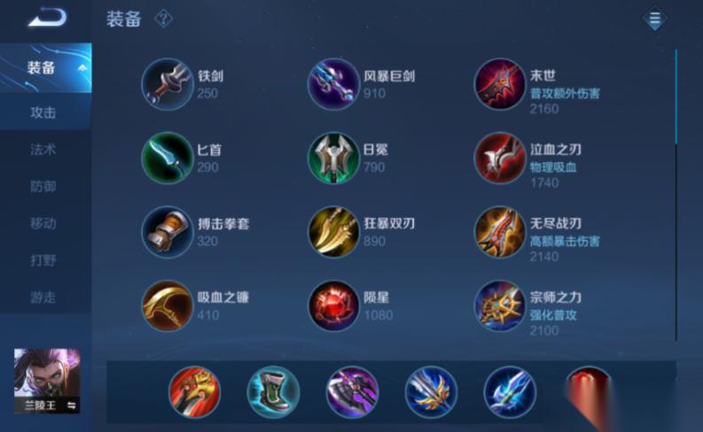 接下来的核心装备是暗影战斧和破军。暗影战斧提供的物理攻击、冷却缩减和物理穿透属性对你来说太重要了,有了它,你的技能伤害会产生质变,切脆皮更加得心应手。破军则是你秒人能力的终极保障,它的被动对生命值低于一半的目标造成额外伤害,配合你自身的高爆发,能让残血敌人瞬间蒸发,是达成瞬秒效果的核心装。第五件装备的选择比较灵活,如果对面脆皮多且保命能力不强,宗师之力是个好选择,它的强化普攻效果能让你在技能间隙补足爆发伤害。要是对面有比较肉的战士或者出了物理防御装,那就得出碎星锤,它的高额百分比物理穿透能有效撕开前排的防御。