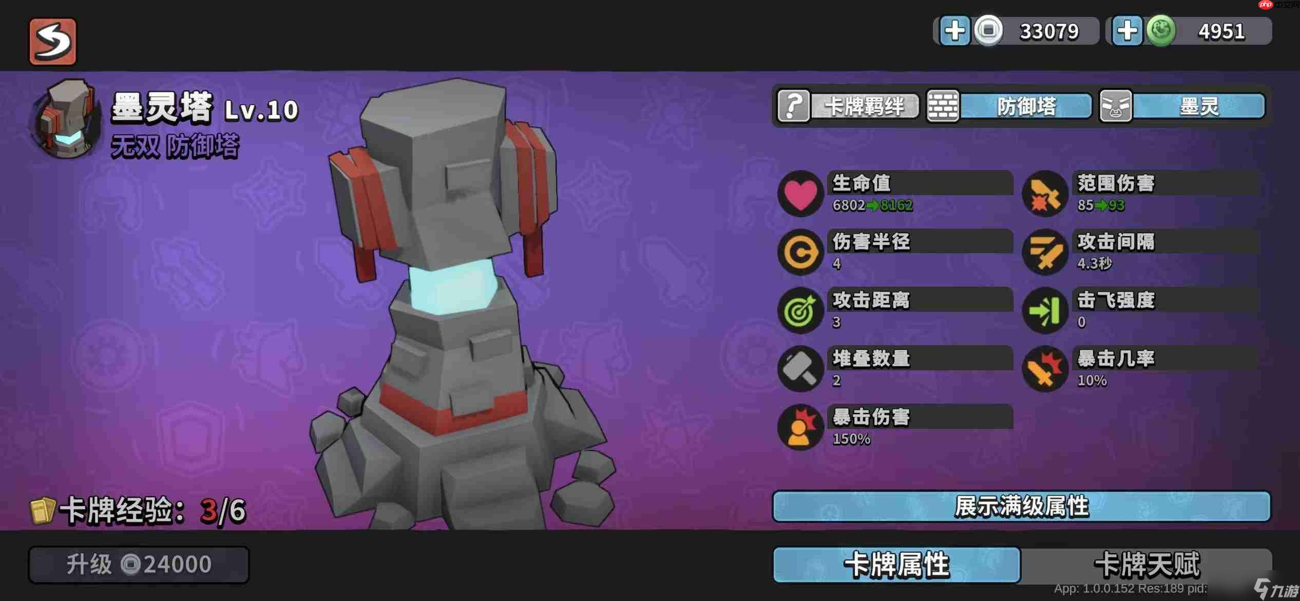 墨灵塔拥有高额伤害和惊人血量,几乎可作移动城墙使用;但攻击距离短、缺乏位移能力,导致应用场景受限,很多时候只能被动挨打。