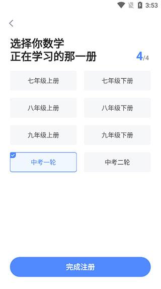 3、选择你数学正在学习的那一册,然后点击完成注册。