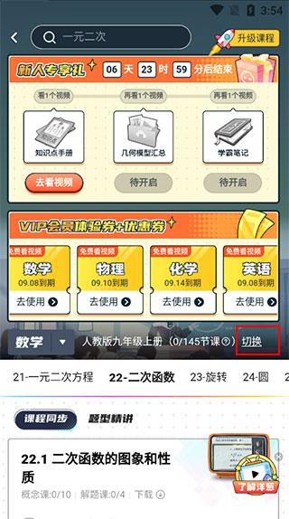 4、进入首页后,新用户可享受新人专享礼,数学、物理、化学、英语这四个课程都可以体验VIP会员福利,赶紧学起来吧。