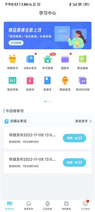 7、返回首页看到今日待学习板块;