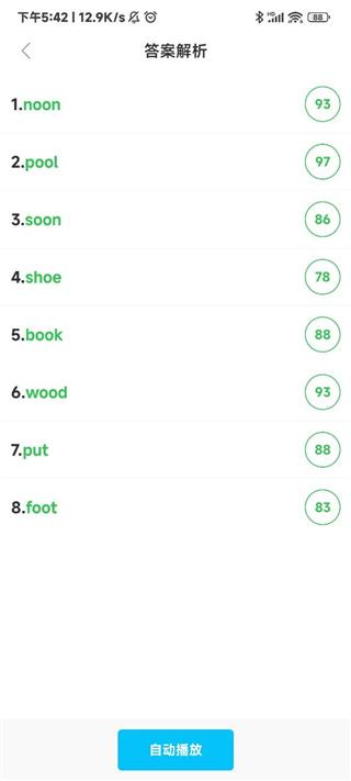 6、点击下方的答案解析还能够回顾自己的单词发音;