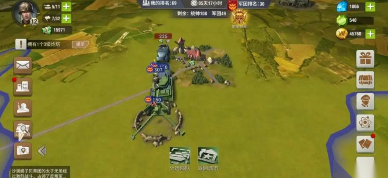 粮城需配置22个仓库、6个民居和1个钢铁厂,其余全建农田,为兵城提供稳定资源输送。战斗型城市则可缩减资源建筑,改为6民居+10仓库+1军工厂,专注屯兵。后勤城市建议13个以上军工厂,搭配8民居和6田10钢15油的资源配比,形成资源生产-兵力制造-前线部署的完整链条。