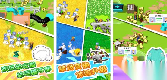 解压感超强,将放置以及经营玩法巧妙结合,大家可在虚拟游戏世界里亲自养羊,感受养羊时的快感,比如在春天来临时,一望无际的绿色大草原上,就要从事着放羊的工作,让这些羊实现青草自由。而等到换季时还需用自动剪毛机给羊剪毛,收获大量羊毛之后,也可加工成各种农产品或者是成品出售赚钱。