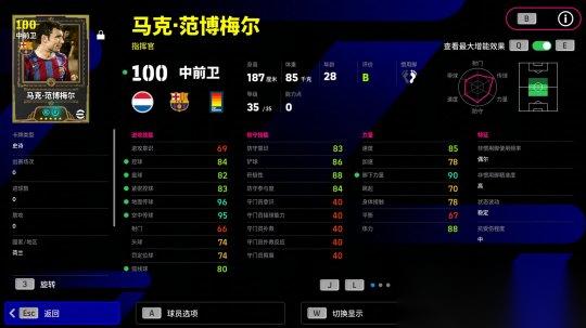 范博梅尔的增能属性为【传球 +3】,这位红蓝指挥官在中场运筹帷幄,梳理球队的进攻路线!
