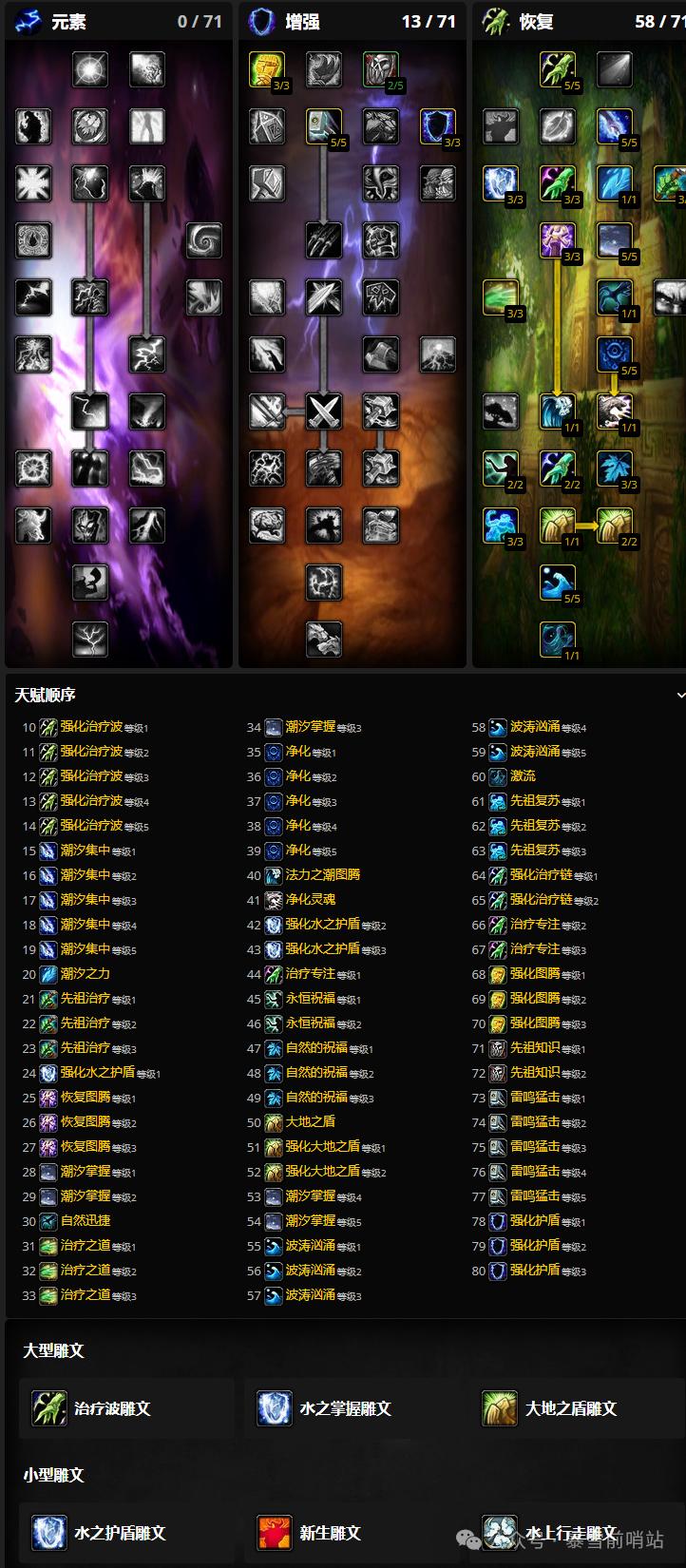 魔兽世界泰坦重铸时光服即将在11月18日正式推出,玩家们又要开始重新练级了,那么有不少小伙伴好奇时光服萨满练级天赋雕文怎么选,下面就给大家带来魔兽世界时光服萨满练级天赋雕文推荐。