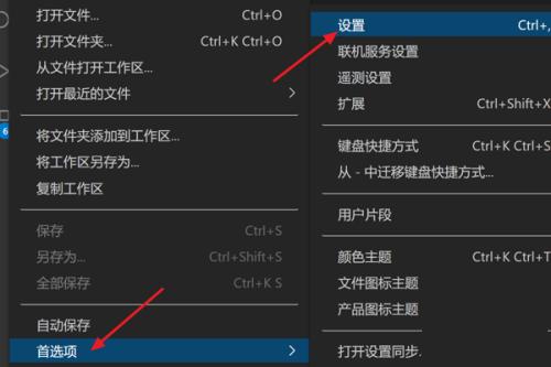 2、接着点击下方选项列表中的"首选项",再点击其中的"设置"。