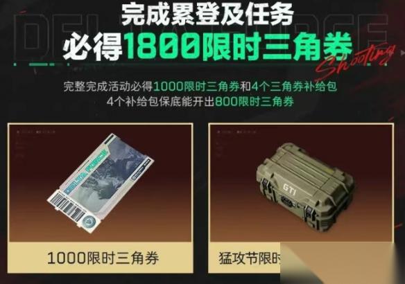 参与官方节日活动(如猛攻节),完成登录、对战等任务,最多可获1800限时三角券。