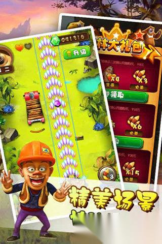 从端游移植过来的一个休闲手游,游戏把跑酷和射击结合在了一起,玩家要操控角色一边躲避障碍物和光头强的攻击,一边瞄准射击敌人。玩家可以切换熊大、熊二等多个角色,每个角色都有独特的能力和技能,而且可以消耗金币强化人物和武器。游戏主线采用闯关机制,而且加入了boss战,也支持多人联机游戏。