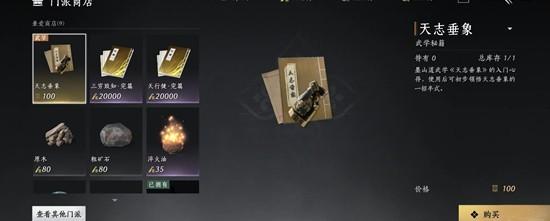 (注意,其他门派也可以购买,只需要点开门派商城,左下角查看门派商城,切换到墨山道就可以买了,有需求的老师可以每周来清空天工及材料等)