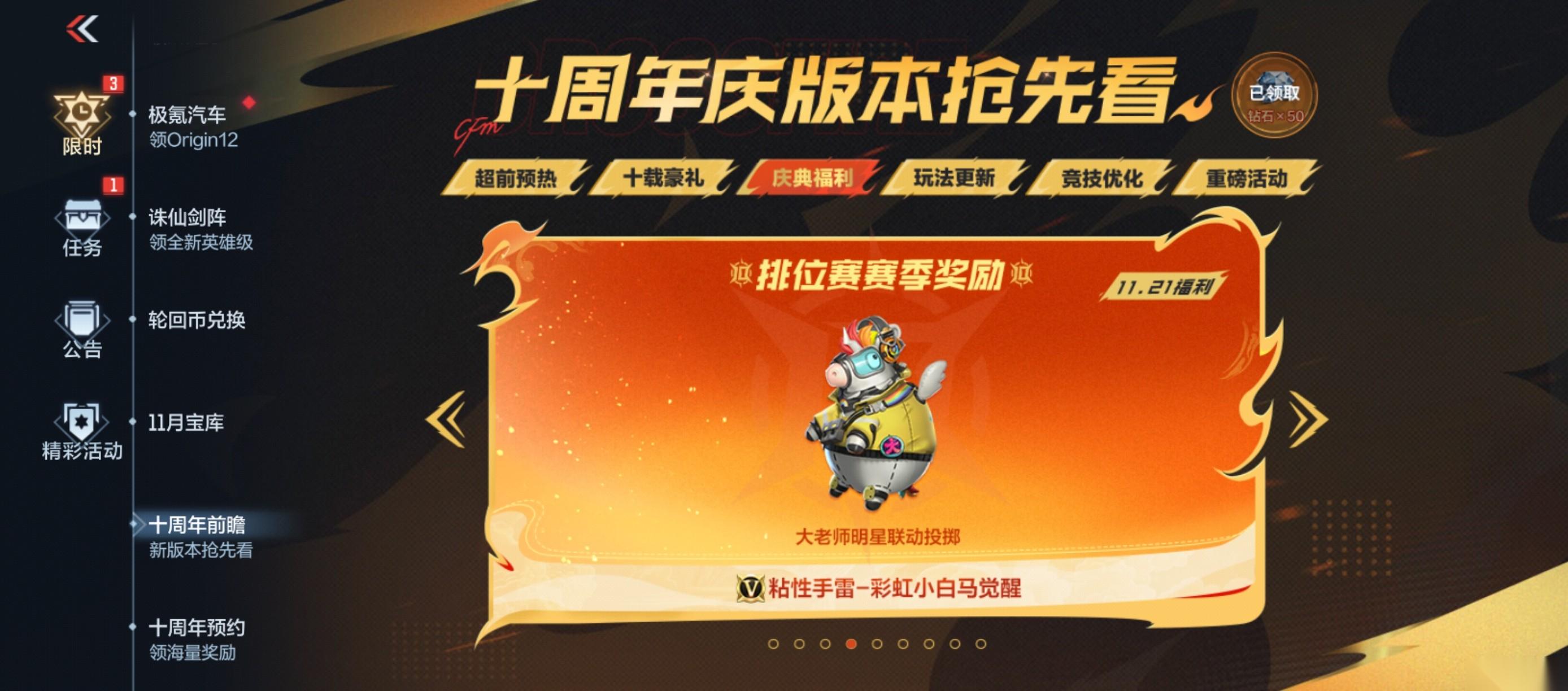 从11月21日新版本上线起,玩家登录游戏即可领取预热阶段的专属好礼。这些奖励包括限时皮肤、稀有道具等丰富内容。通过完成指定活动任务或参与抽奖机制,还有机会赢取珍贵的纯金火麒麟饰品。此外,钻石、点券等高实用性资源也将全面开放获取途径,助力玩家畅享周年狂欢。