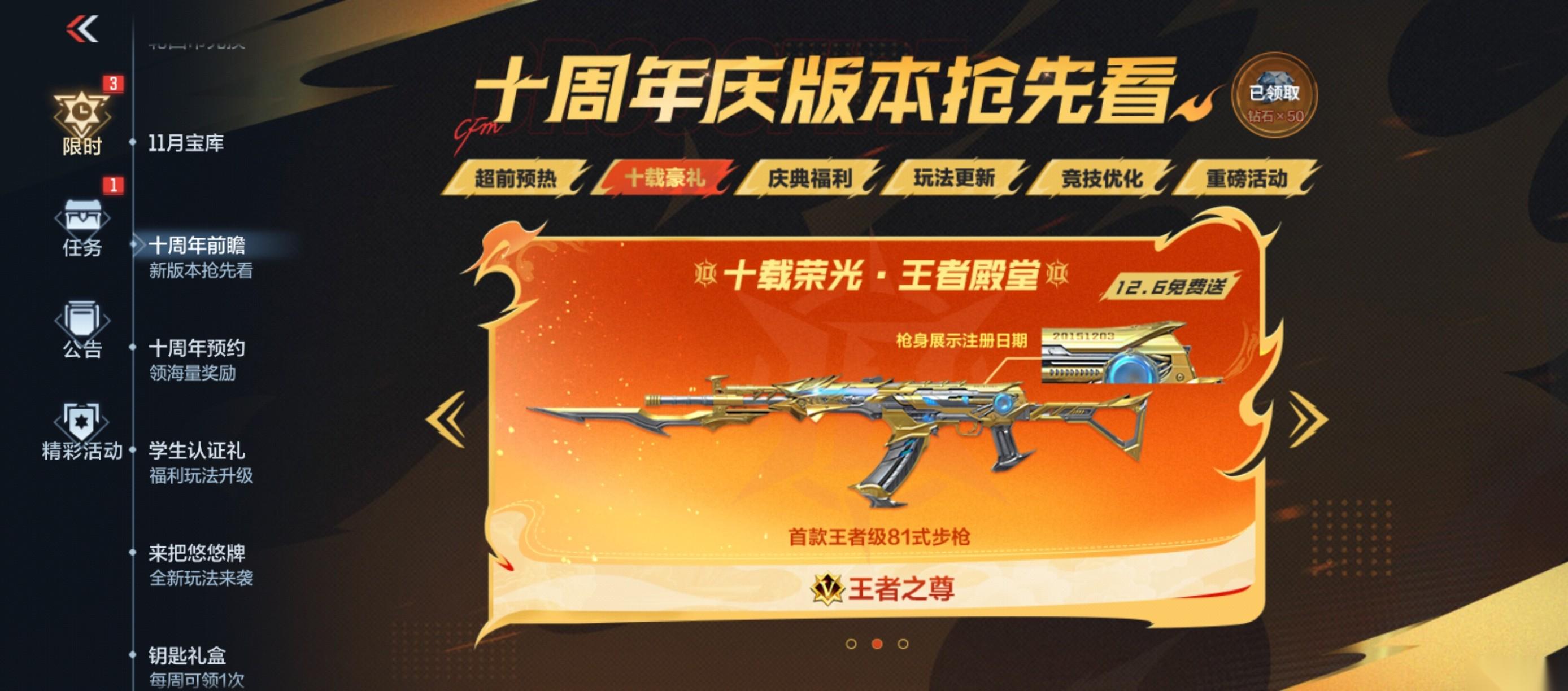 本次CF手游10周年主题活动将于12月6日正式开启,届时知名艺人大张伟将以联动角色身份惊喜登场。玩家只需参与相关活动任务,即可解锁大张伟的经典形象以及专属语音包等内容,极大增强了游戏的互动性与趣味性。除了限定角色外,活动还将推出一款极具收藏价值的武器——八一式步枪王者之尊。作为十周年特别推出的限定装备,该武器不仅拥有独特的属性加成,在外观设计和特效表现上也达到了全新高度。