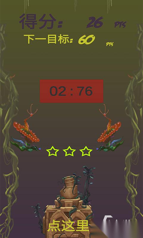 《速点金手指》完全是一款以锻炼手速为出发点的游戏,设置的得分系统,与大家的手指点动屏幕的速率息息相关,游戏中一共引入了三大阶段,目标值层层提升的分值挑战,全部的屏幕任意一个区域点都可以进行点动,而且还在屏幕里加入了三颗星星,每达到一个分值星星就会随之点量,总之你想要拥有近乎神祗一般的手速必须来试试。
