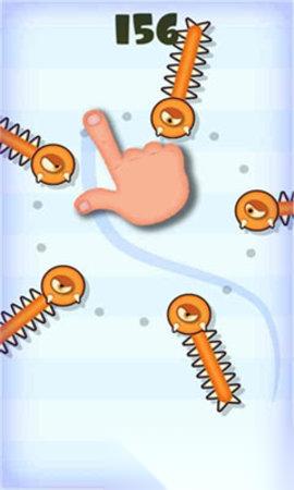 《手指历险记》游戏充分的模拟了手指的外观以及操作特征,并引用了一种更为别具新意的玩法挑战,在一个透白的背景上,加入了浑身长满刺的动物,并且还把屏幕两次设置成了不能触碰到障碍,过程中,从起点开始控制手指,巧妙的规避怪物一路来到终点,随着跳着的递增,这些怪物会以动态话的表现,扑扑前进。