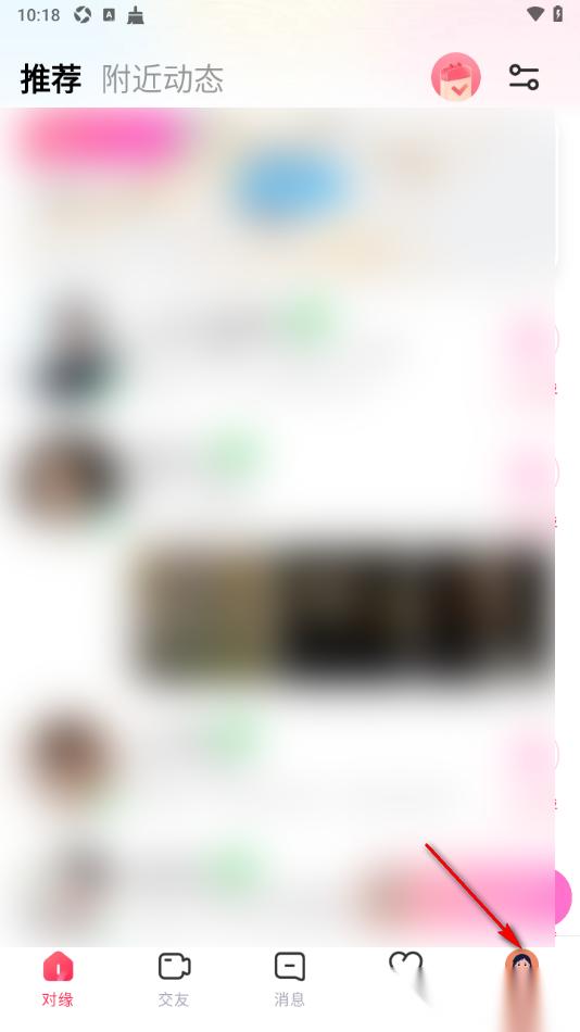 1.在我们手机上找到对缘app这款软件点击打开,再在页面底部位置选择我的选项即可进入。