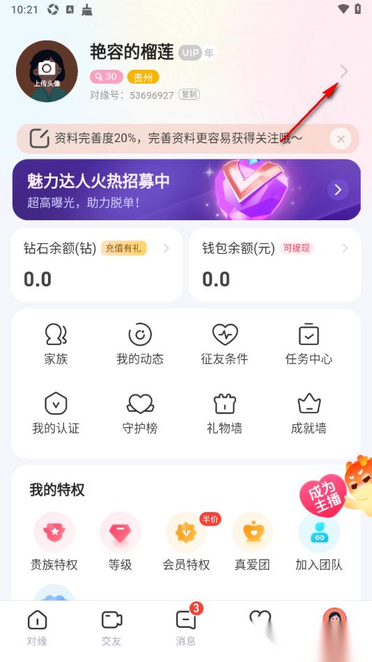 对缘app是一款非常不错的社交软件,支持使用该软件和附近好友互动联系,特别是一些喜欢通过线上交友的用户,在该软件中可以享受到通过直播交友、聊天交友等,同时每天还会有其他用户访问自己的主页,若是想要查看有哪些人访问过自己的个人主页,那么可以打开访问记录页面查看,在我的页面中点击进入到个人主页页面,即可在顶部位置找到访客功能,点击进入就可以查看最近有哪些用户访问过自己,可以查看访问次数、同城访问以及可以查看我访问过哪些人,下方是关于该问题的教程方法。