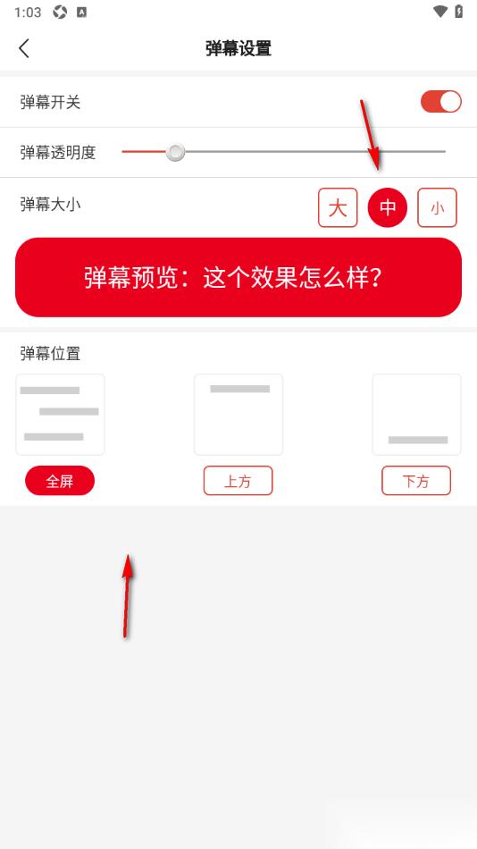 4.在当前打开的窗口中将【弹幕大小】后面的【大】选项点击即可设置成大字幕。