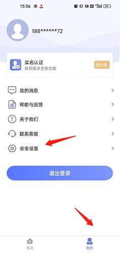 1、打开软件,点击底端的“我的”选项,然后点击“安全设置”选项。