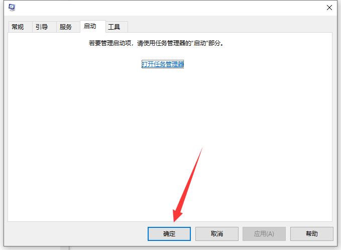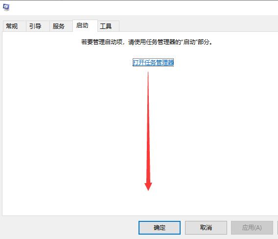 3、然后在系统配置窗口的“启动”选项卡上,单击“打开任务管理器”,如图所示。