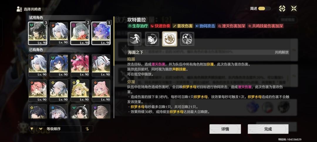坎特蕾拉坎特蕾拉登场普攻三下 —— 技能 —— 长按普攻 ——普攻三下 —— 技能 —— 大招 ——协奏满切弗洛洛,离场时尽量放一下声骸技能(期间自己注意闪避时机);