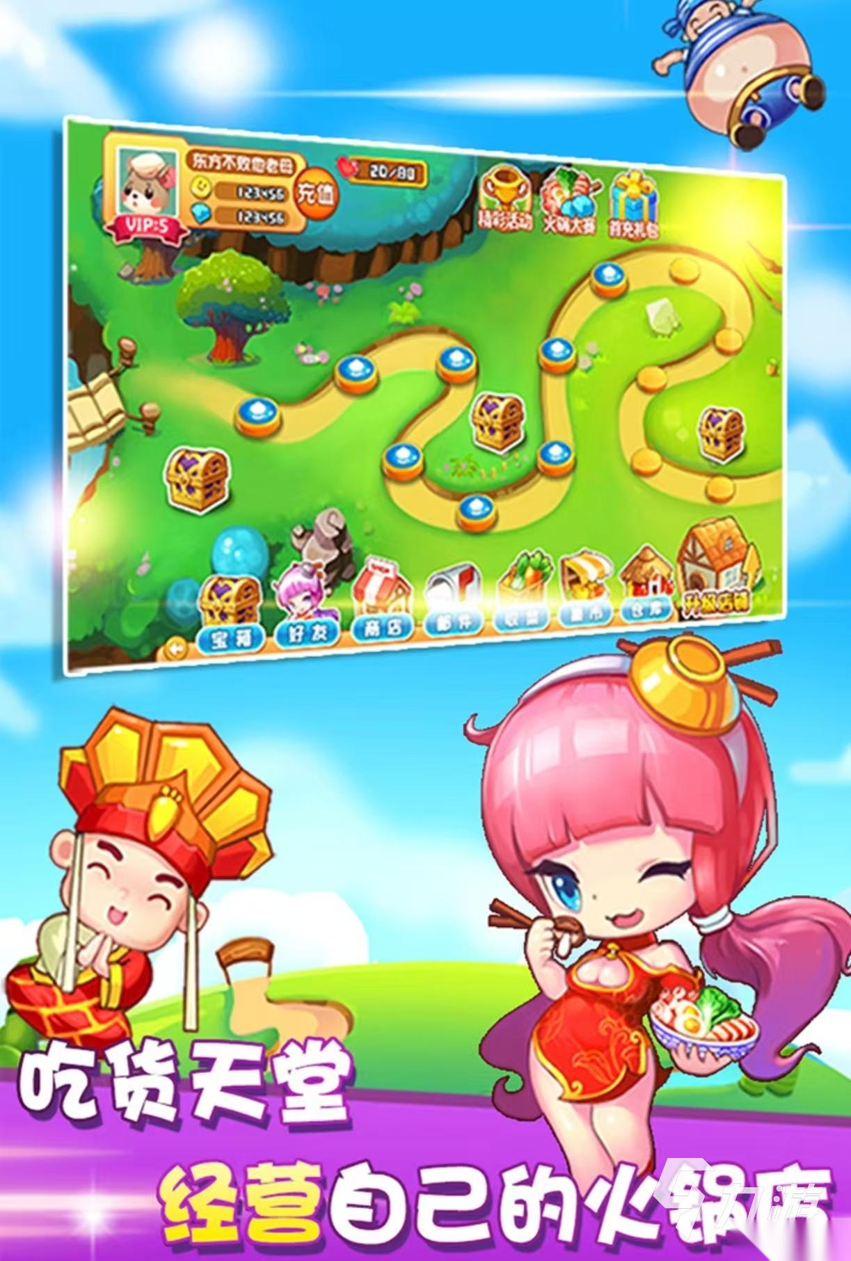 《开心火锅店》玩家则需要模拟火锅店的运营,需要每天率先准备好火锅的食材,根据顾客们的要求来制作火锅。店铺会逐渐的赚取更多的收益,游戏里面还可以自己种植蔬菜,商店和集市中可以购买不同的材料,选择更多新的菜品来吸引大家。需要不断的提高服务的质量和客户的满意度,拥有着各种不同口味的火锅锅底,客人们也会有不同的消费饮食习惯,需要懂得一定的策略营销。