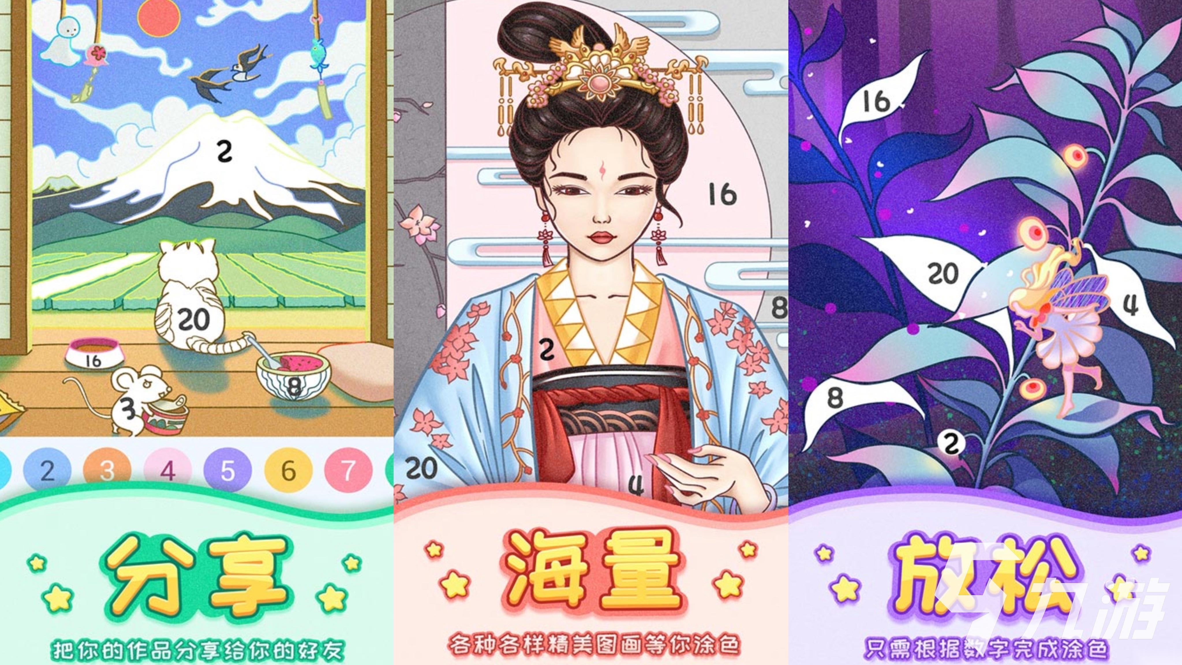 《数字填色二》是一款很放松解压的填色小游戏。整个游戏的颜色搭配非常的艳丽精美,而且操作起来也非常的轻松,我们需要根据系统给出的图片,按照对应的数字把图片里缺失的颜色填补完整就可以了。游戏里的图画非常的丰富,而且每张图片都十分独特,颜色搭配一目了然,完全不需要费心思考。另外,游戏还有很多的辅助道具,让我们的填色体验更加的有趣多样。