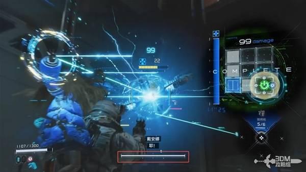 左扳机瞄准的时候屏幕右边会出现新的HUD,用手柄上的按钮控制矩阵内的侵入条走向;当连接到绿色的节点时敌人会被破解,此时可以造成可观的伤害。
