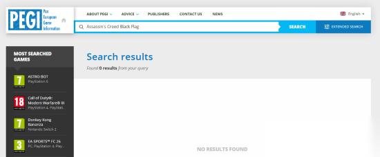 但截止发稿前,该网站上的《刺客信条:黑旗 重制版》的分级结果现已不可见。